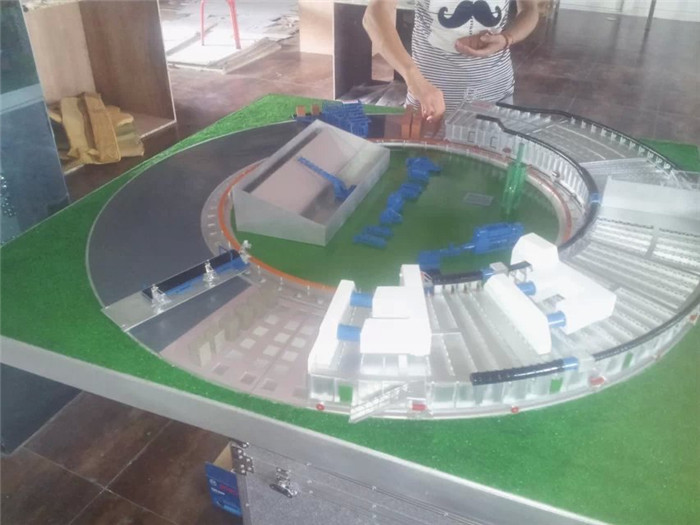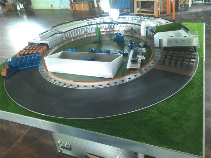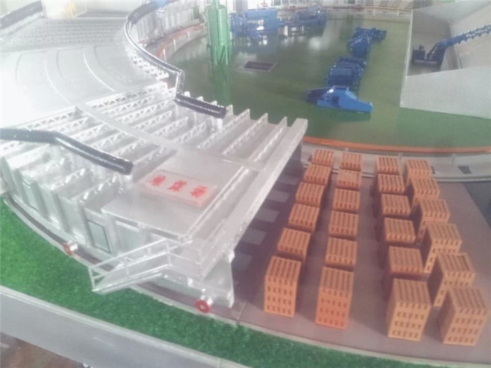 自動(dòng)化磚窯模型,比例1:60制作,自動(dòng)化磚窯,自動(dòng)上料,自動(dòng)攪拌,碼坯機(jī)器人,化硫塔,粉碎機(jī),自動(dòng)切坯機(jī),這些設(shè)備在整個(gè)沙盤(pán)上都有展示,整體展示出整個(gè)自動(dòng)化磚窯的構(gòu)成和工作原理
