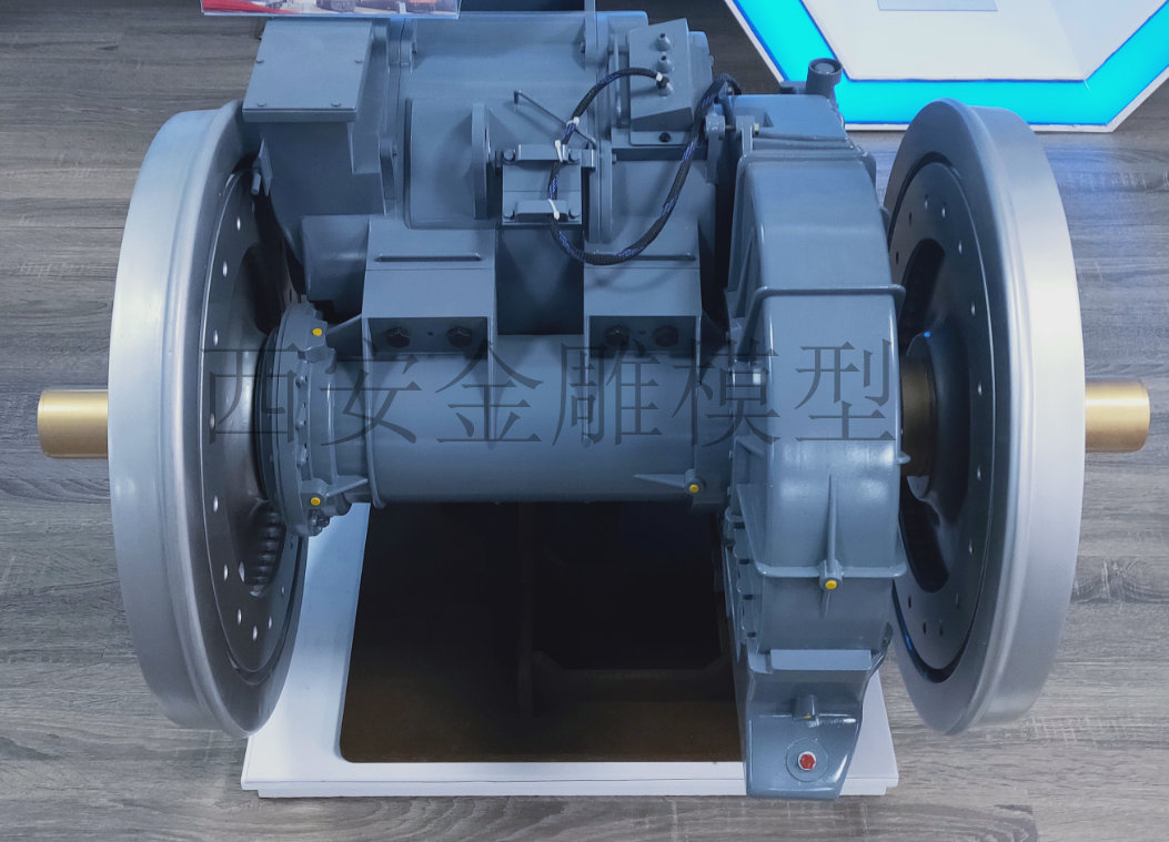 簡介—— 寶雞機(jī)修廠定制的機(jī)車輪對驅(qū)動系統(tǒng)模型,火車輪要慢速轉(zhuǎn)動,外形逼真精美。